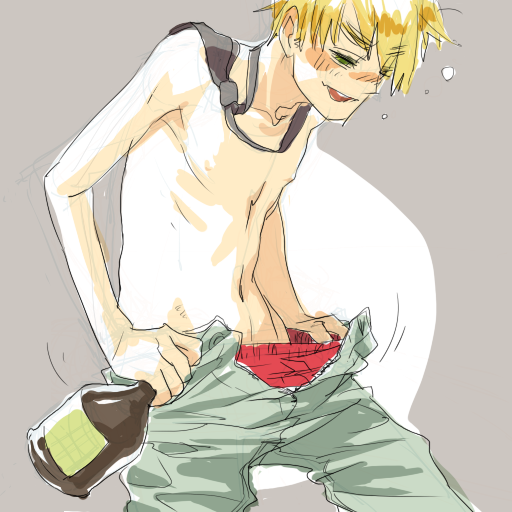 後から何となく付け足したネクタイが不自然すぎる。酔っ払いのネクタイは頭に付いてなきゃ!